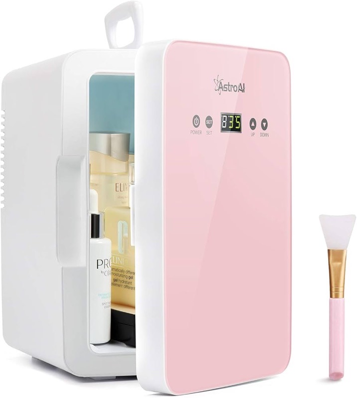 Meet the AstroAI Mini Fridge, your personal cooling assistant in the glamorous world of skincare. Small enough to fit on your vanity but mighty in its ability to preserve your potions and lotions, this is not just an applianceâitâs a lifestyle upgrade. Ever wondered how to keep your serums and creams as fresh as you are? Enter the AstroAI Mini Fridge! With its 6-liter capacity, it comfortably holds up to 8 cans or a treasure trove of beauty essentials. Imagine opening this tiny portal to bliss and being greeted by an array of chilling delights, all refreshing and ready to pamper your skin. No more wondering if your latest luxury cream has lost its potency from being exposed to your roomâs unpredictable microclimate. Plus, this little fridge doesnât discriminate; whether youâre storing jade rollers, sheet masks, or the occasional can of soda for a quick refreshment, it handles it all with style. Its compact size means it won’t hog space, yet it stands quietly in your corner, a sentinel of cool vibes. Perfect for dorm rooms, bedrooms, or even your car when youâre on the go, its versatility is only matched by its penchant for being the life of the party. With a sleek design that blends seamlessly with any decor, the AstroAI Mini Fridge is a must-have for anyone serious about their skincareâbecause why shouldnât your skin feel as cool as you do?